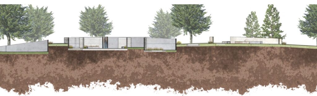 Veterans Garden: From the Family Gardfen, visitors gradually descend to the Veterans Garden. The design uses thoughtful material choices to evoke reverence and reflection. The surrounding walls will be engraved with information about areas of conflict, the evolution of military support, and stories of Veterans. This feature aims to encourage visitors to reflect on the personal experiences of those being memorialised. As visitors move toward the lower terrace, the space evokes a transition from beauty to contemplation, providing an immersive and personal experience.